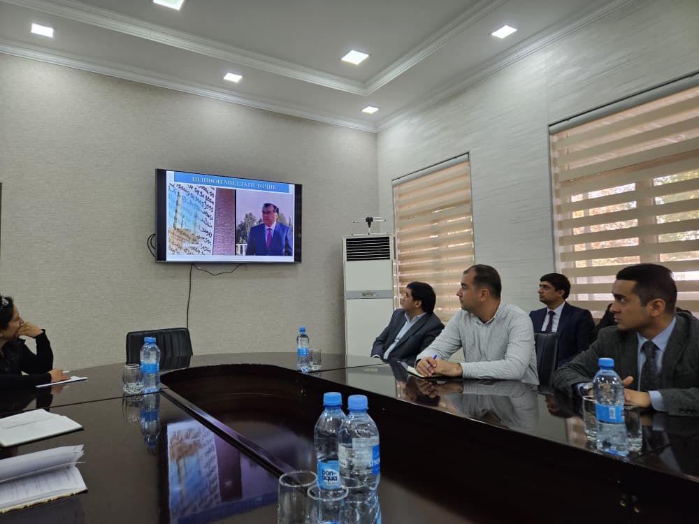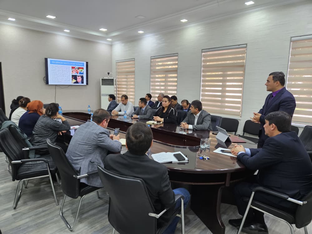 Затем и. о. Председателя Палаты в продолжение выступления поздравил сотрудников с Днем Президента Республики Таджикистан.