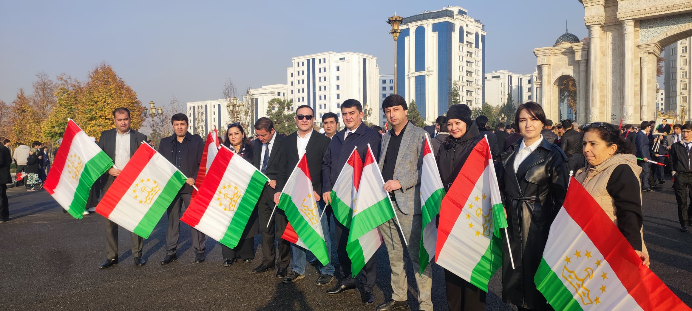 Сегодня в комплексе «Площадь Независимости» города Душанбе состоялось массовое шествие, посвящённое Дню Государственного флага Республики Таджикистан, с участием жителей столицы, представителей министерств и ведомств, высших учебных заведений и различных структур страны. Шествие стартовало от комплекса «Площадь Независимости» и продолжилось до Площади Национального Флага. В мероприятии также активно приняли участие руководство и сотрудники Торгово-промышленной палаты Республики Таджикистан.