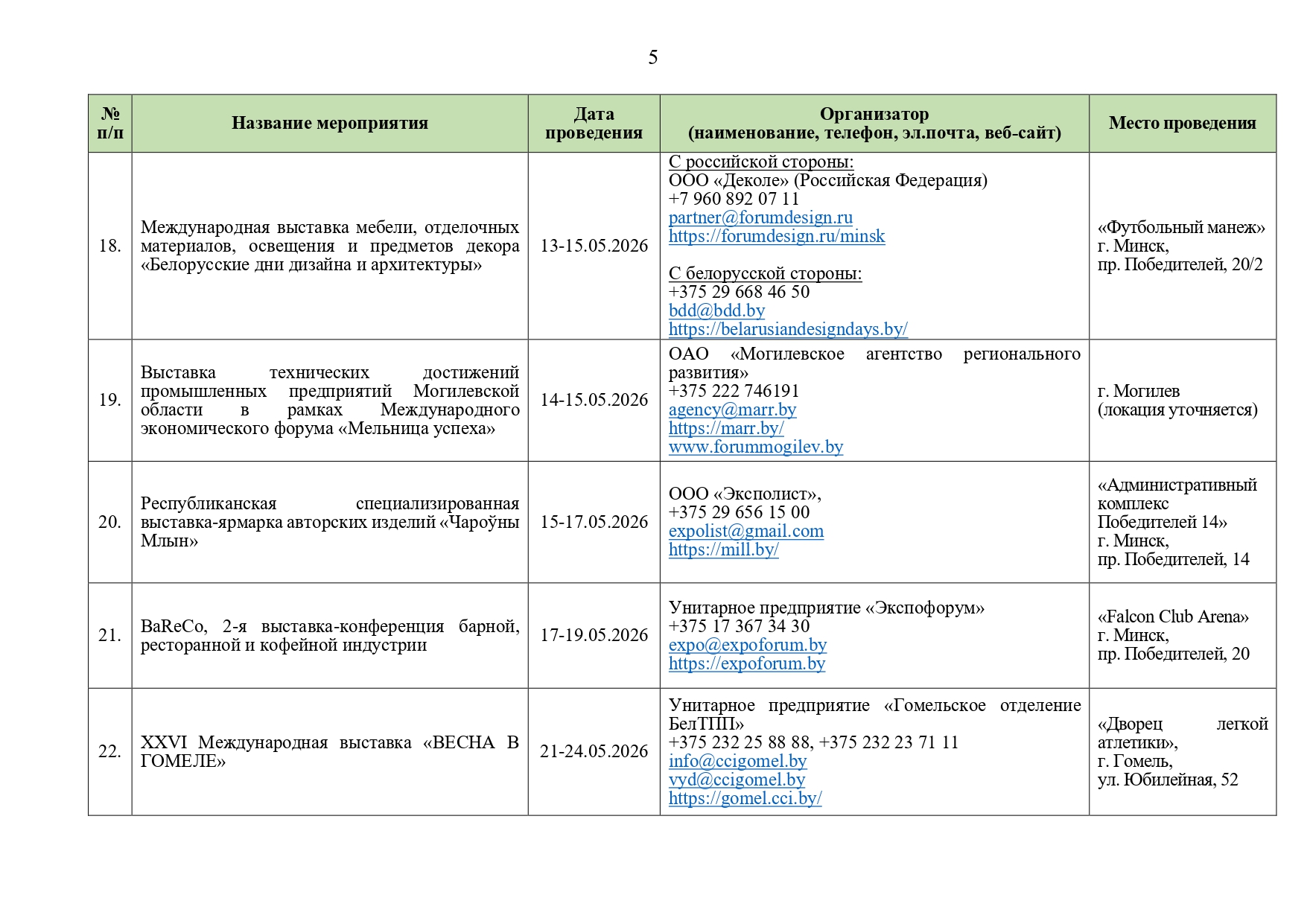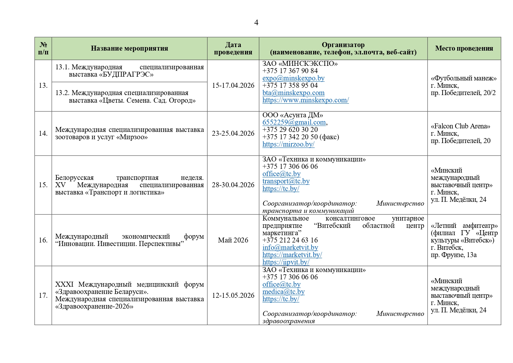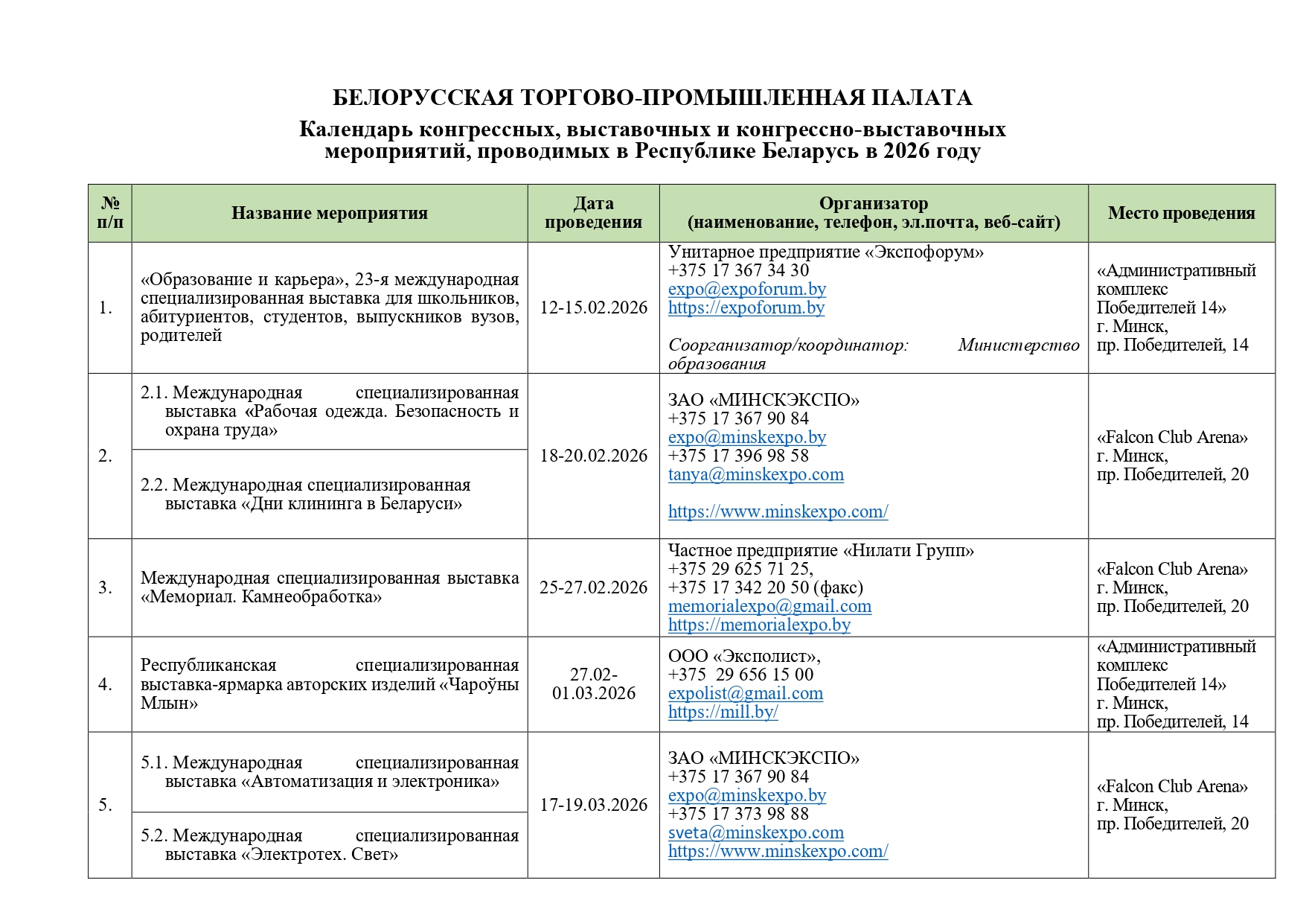 Тақвими чорабиниҳои конгресс, намоишгоҳ ва конгресс-намоишгоҳӣ, ки дар Ҷумҳурии Беларус дар соли 2026 баргузор мешаванд