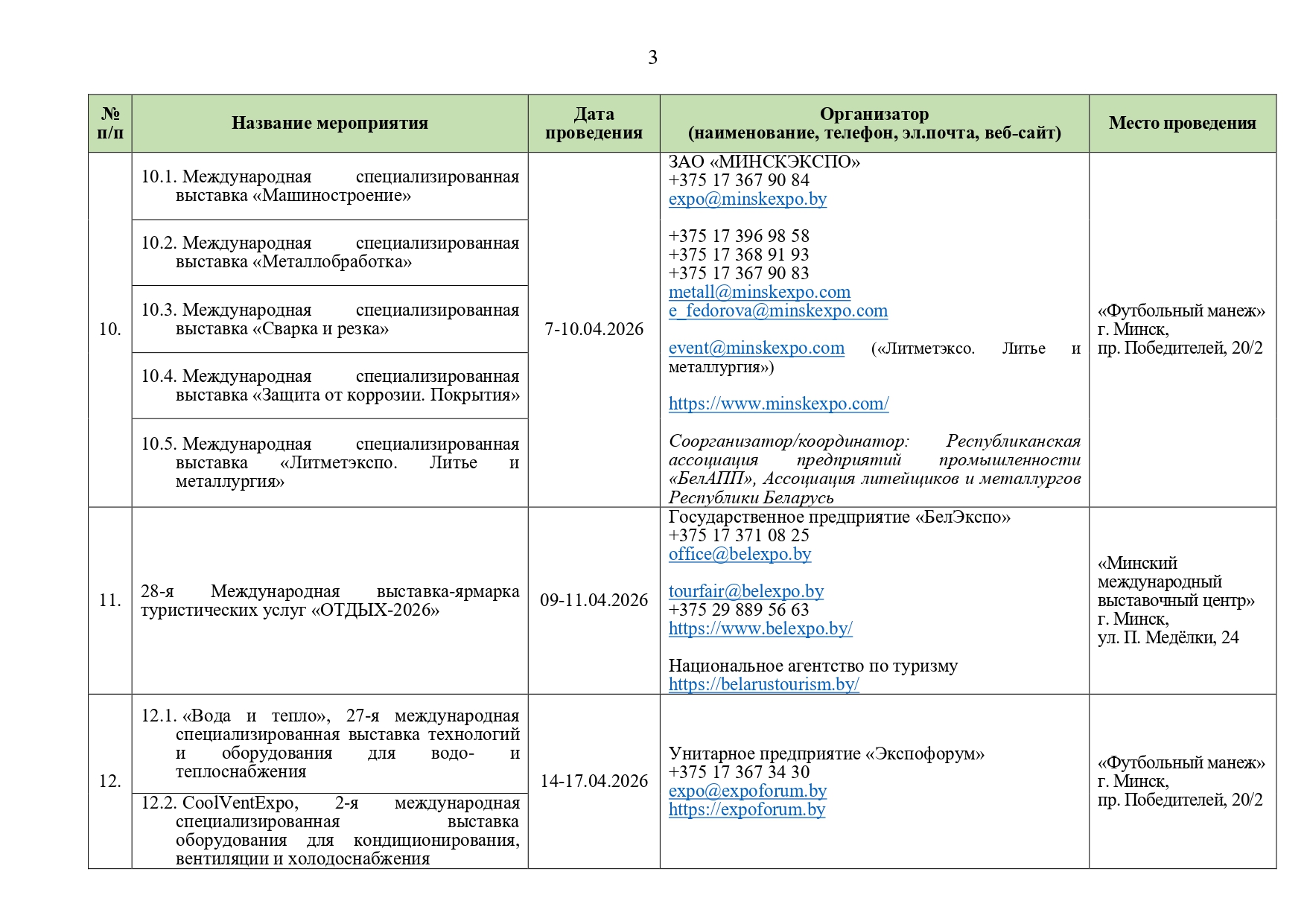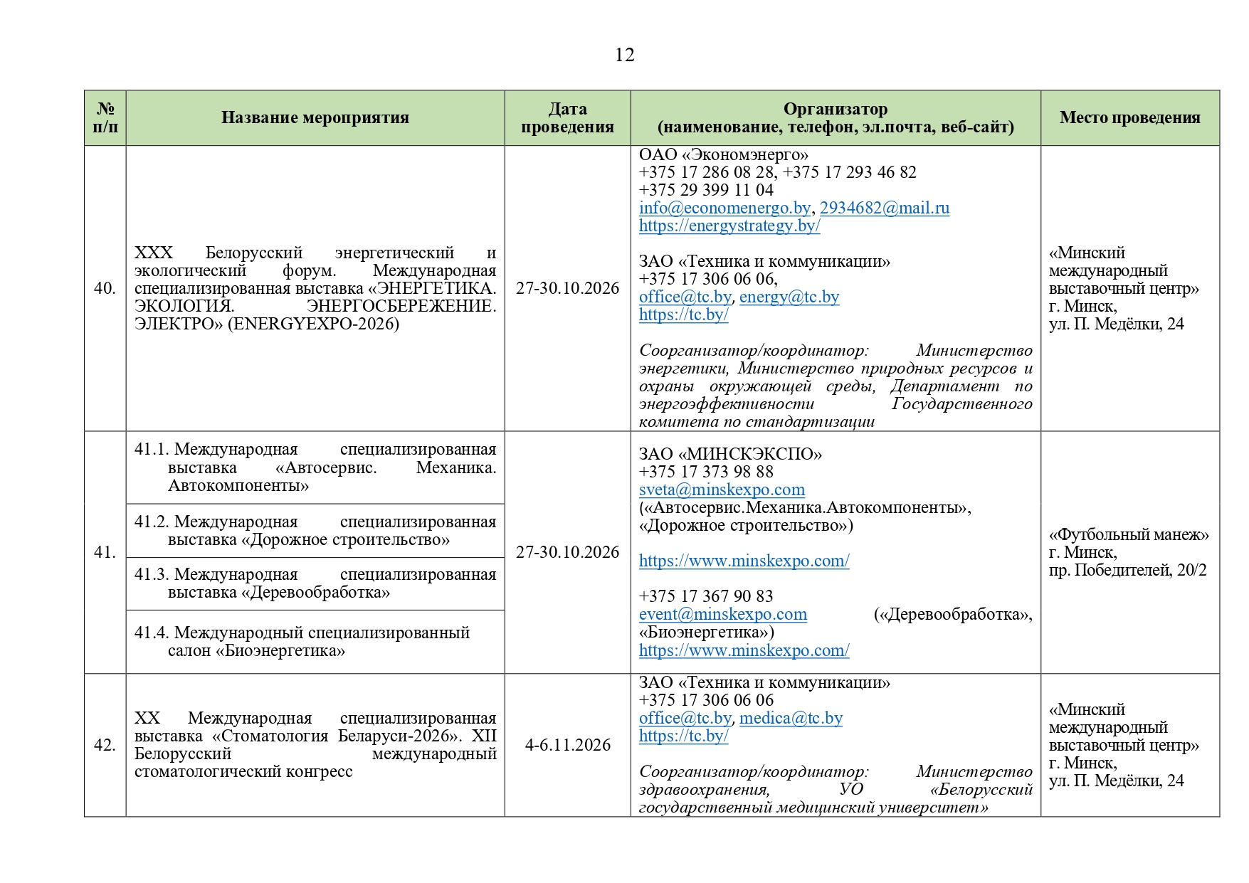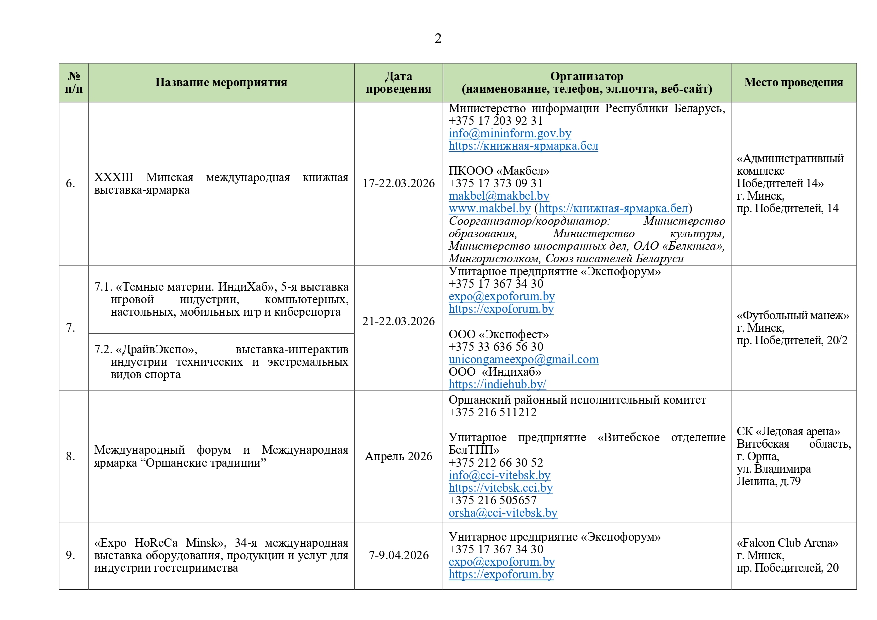Тақвими чорабиниҳои конгресс, намоишгоҳ ва конгресс-намоишгоҳӣ, ки дар Ҷумҳурии Беларус дар соли 2026 баргузор мешаванд