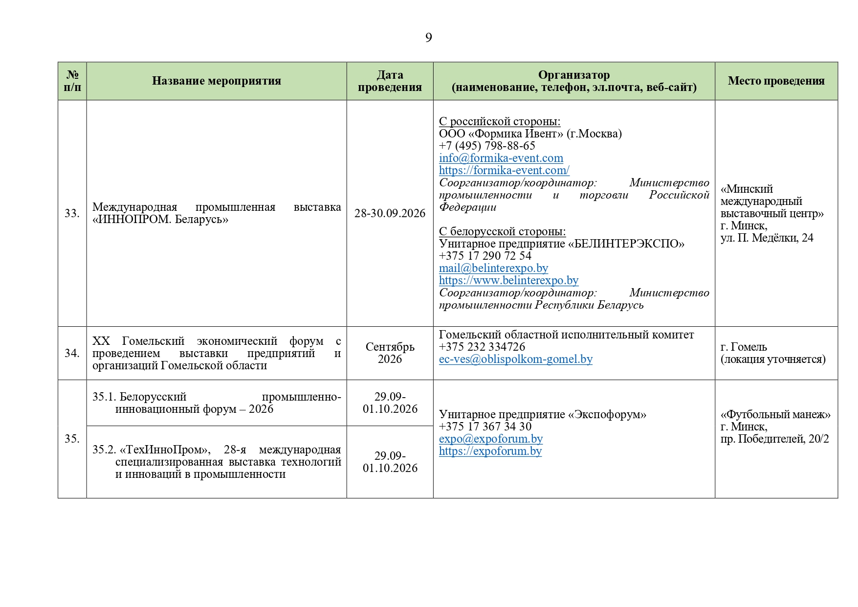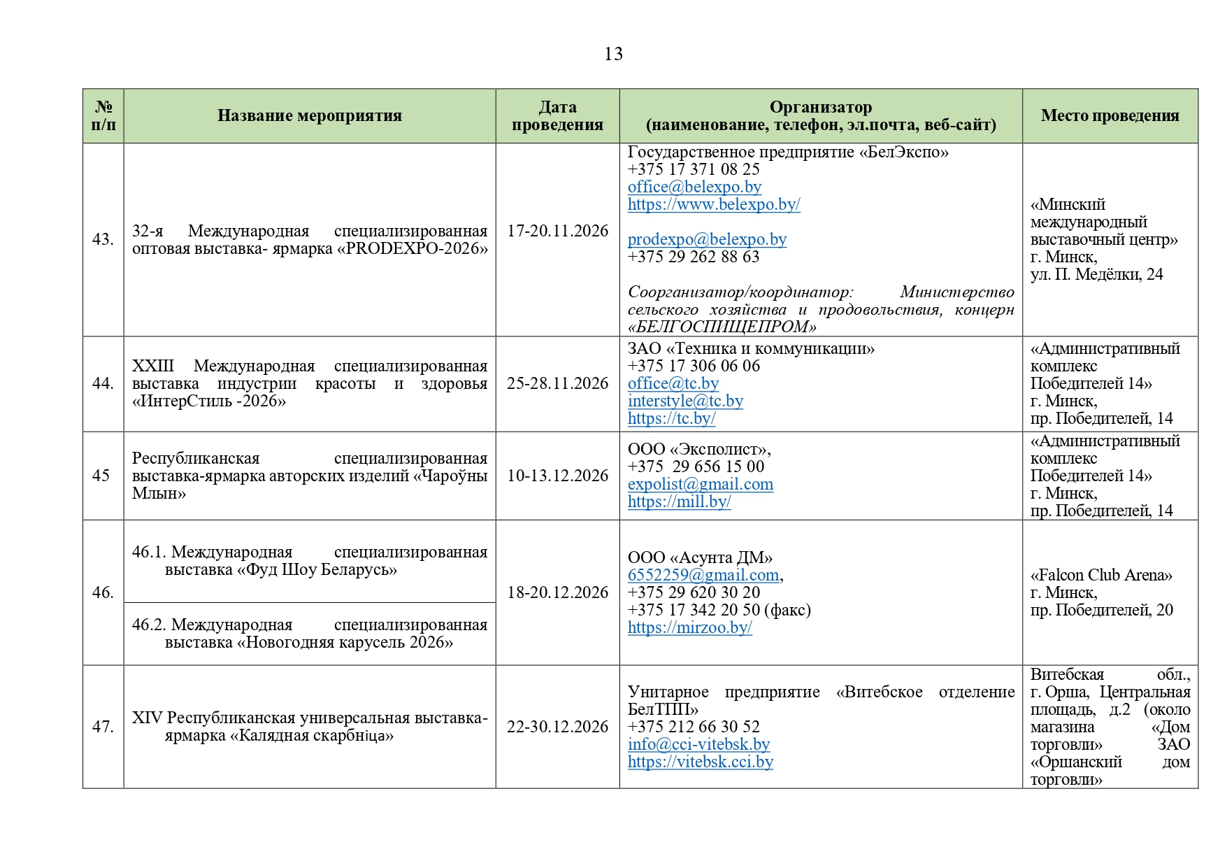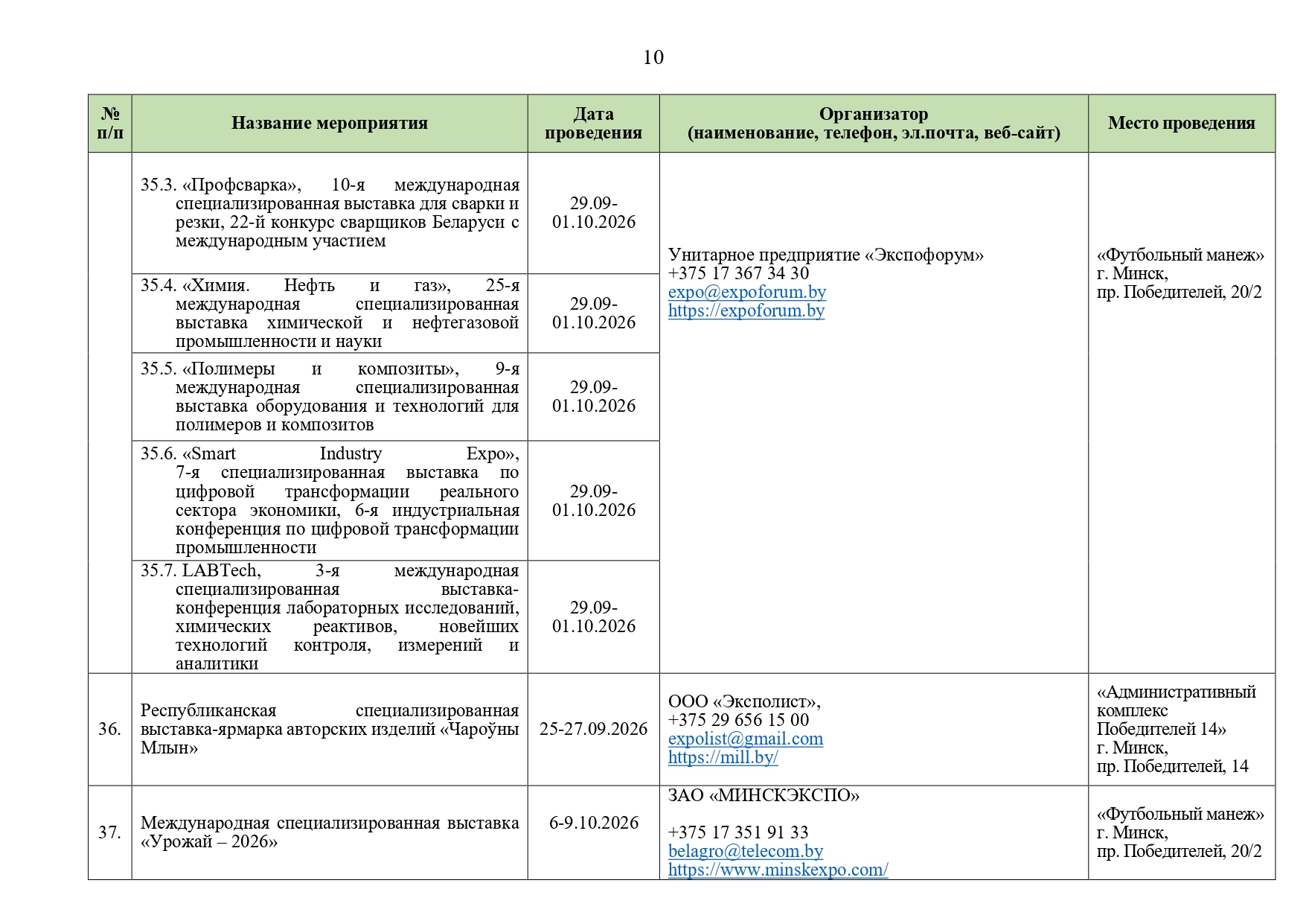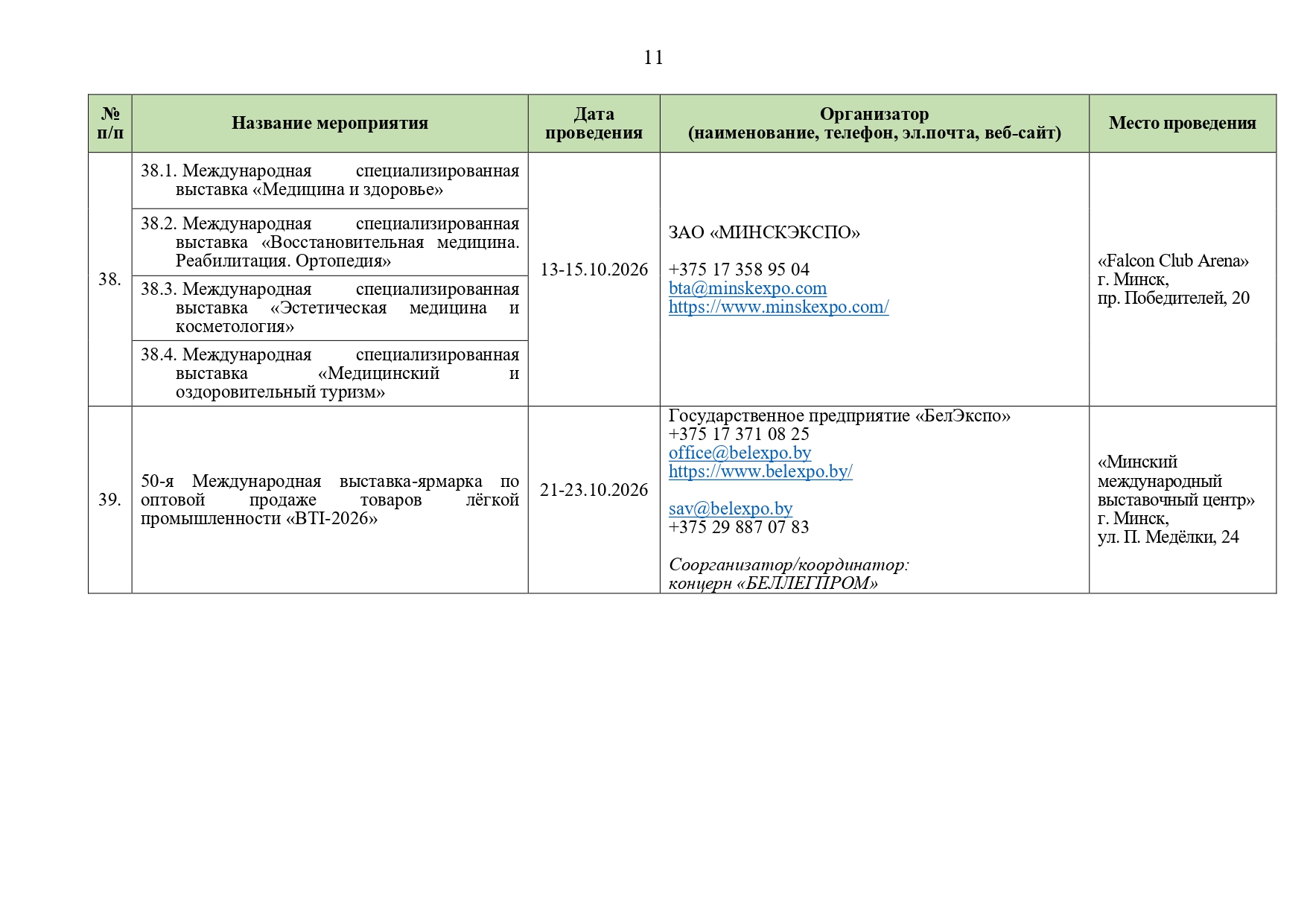 Тақвими чорабиниҳои конгресс, намоишгоҳ ва конгресс-намоишгоҳӣ, ки дар Ҷумҳурии Беларус дар соли 2026 баргузор мешаванд