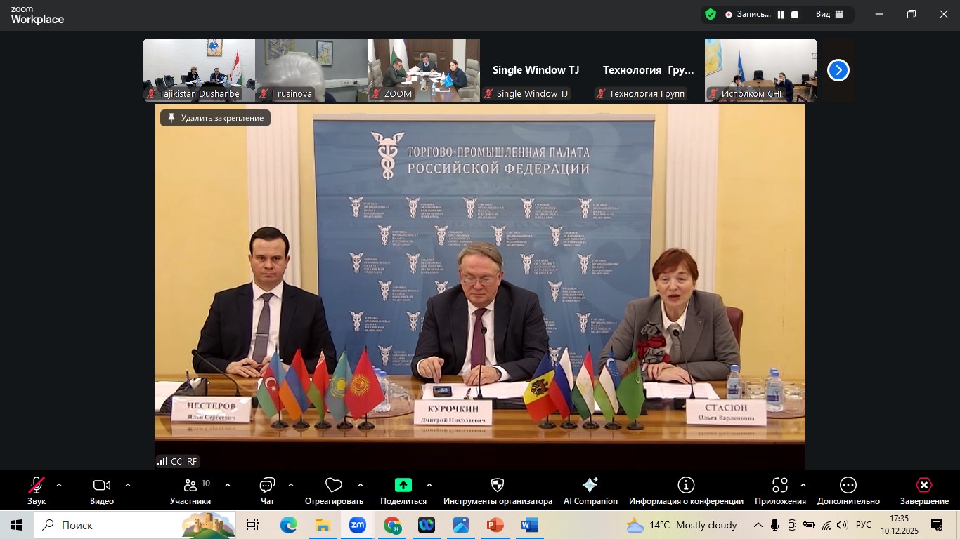 10 декабри соли 2025 дар шакли маҷозӣ аз ҷониби Палатаи савдо ва саноати Ҷумҳурии Тоҷикистон Ҷаласаи кории палатаҳои савдо ва саноати давлатҳои иштирокчии Иттиҳоди Давлатҳои Мустақил ташкил карда шуд.