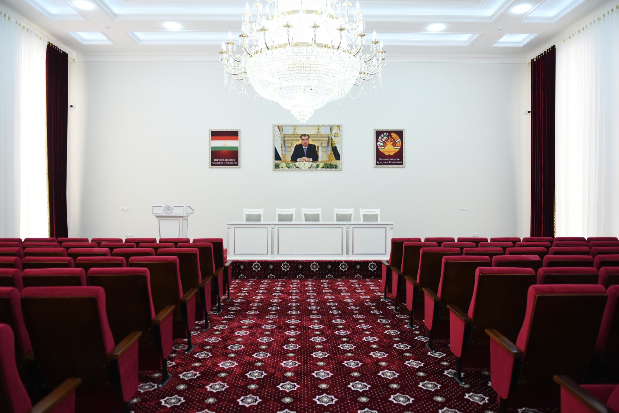 Дар ошёнаҳои болоии бино толори барҳаво барои маҷлис, ҳуҷраҳои роҳбарият ва утоқҳои ёрирасон ҷойгир шудаанд. Толори маҷлис бо техникаи муосири аудиовизуалӣ муҷаҳҳаз буда, имкон медиҳад, ки ҳамоишҳои сатҳи баланд, форумҳои байналмилалӣ ва вохӯриҳои корӣ дар шароити муносиб баргузор гарданд. Ҳуҷраҳои корӣ бошанд, барои фаъолияти самараноки кормандон бо тамоми шароити зарурӣ таъмин шудаанд.